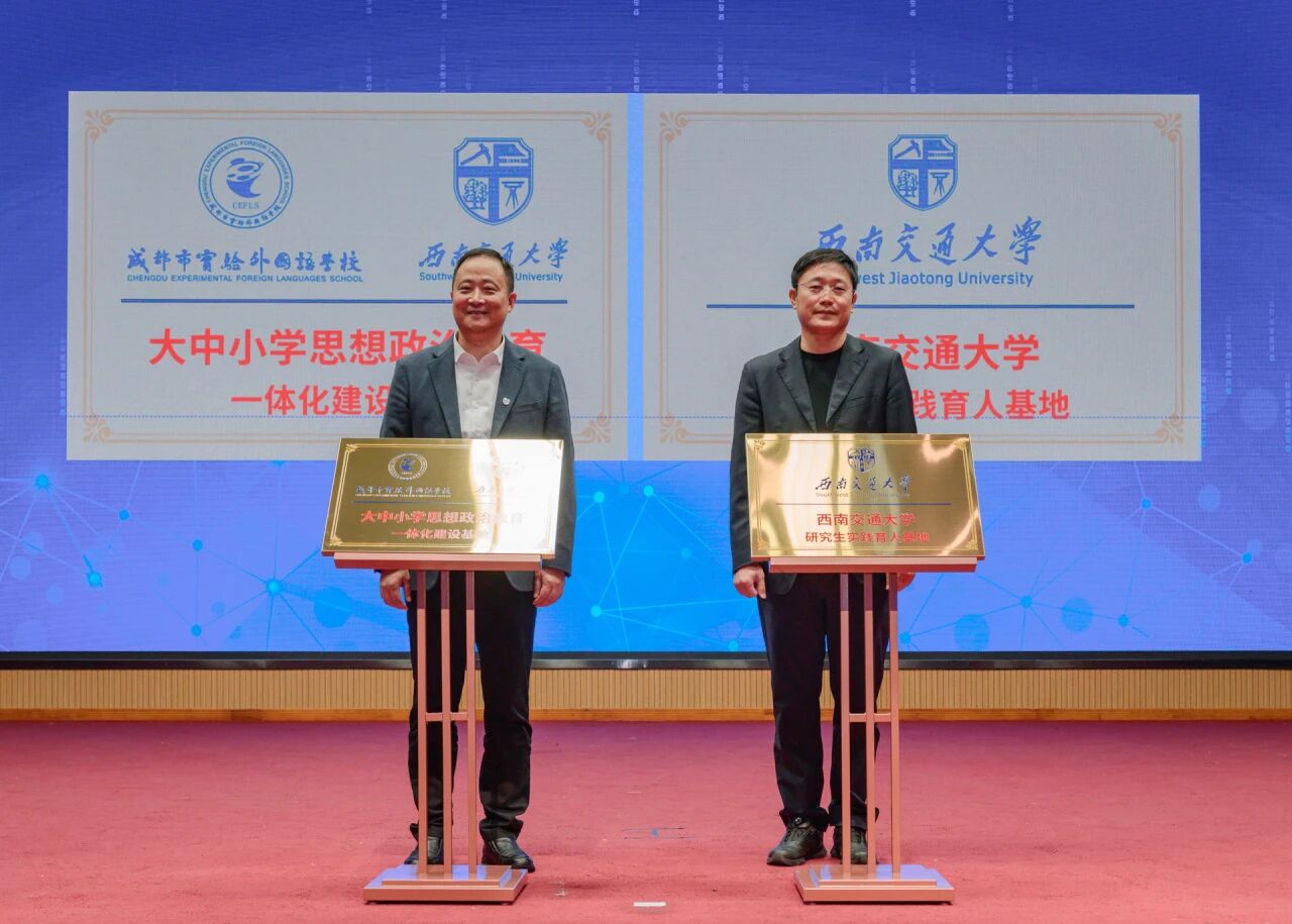 党委副书记高平平,成都市实验外国语学校党委书记、校长刘元华出席仪式,并为“大中小学思想政治教育一体化建设实践基地”与“亚洲成人在线